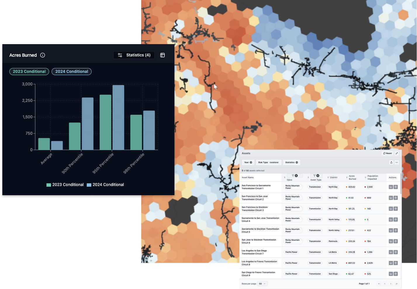 Figure out which assets are your biggest risks and where spending money on upgrades will actually make a difference. See the potential dollar impact of wildfire scenarios to justify your investments with real ROI data. Make informed decisions for wildfire mitigation plans that regulators will accept and that actually protect your system.